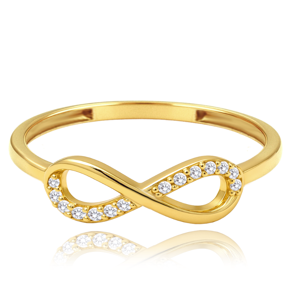MINET Elegancki złoty pierścionek nieskończoność z białymi cyrkoniami Au 585/1000 rozm. 13 - 0,90g