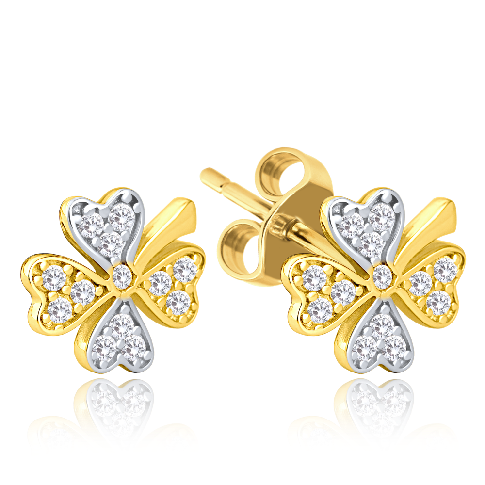 MINET Złote kolczyki czterolistne z białymi cyrkoniami Au 585/1000 1,70g