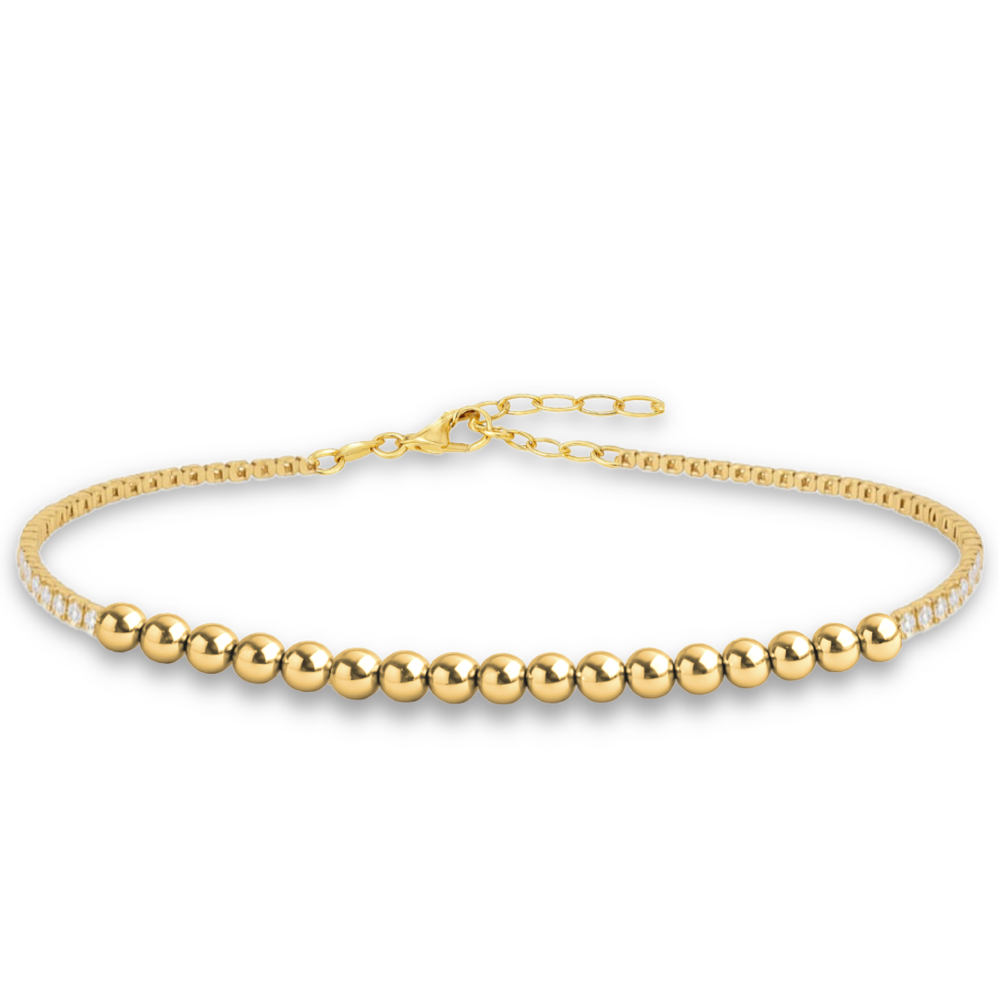 MINET Elegancka złota bransoletka kulka z białą cyrkonią Au 585/1000 2,85g