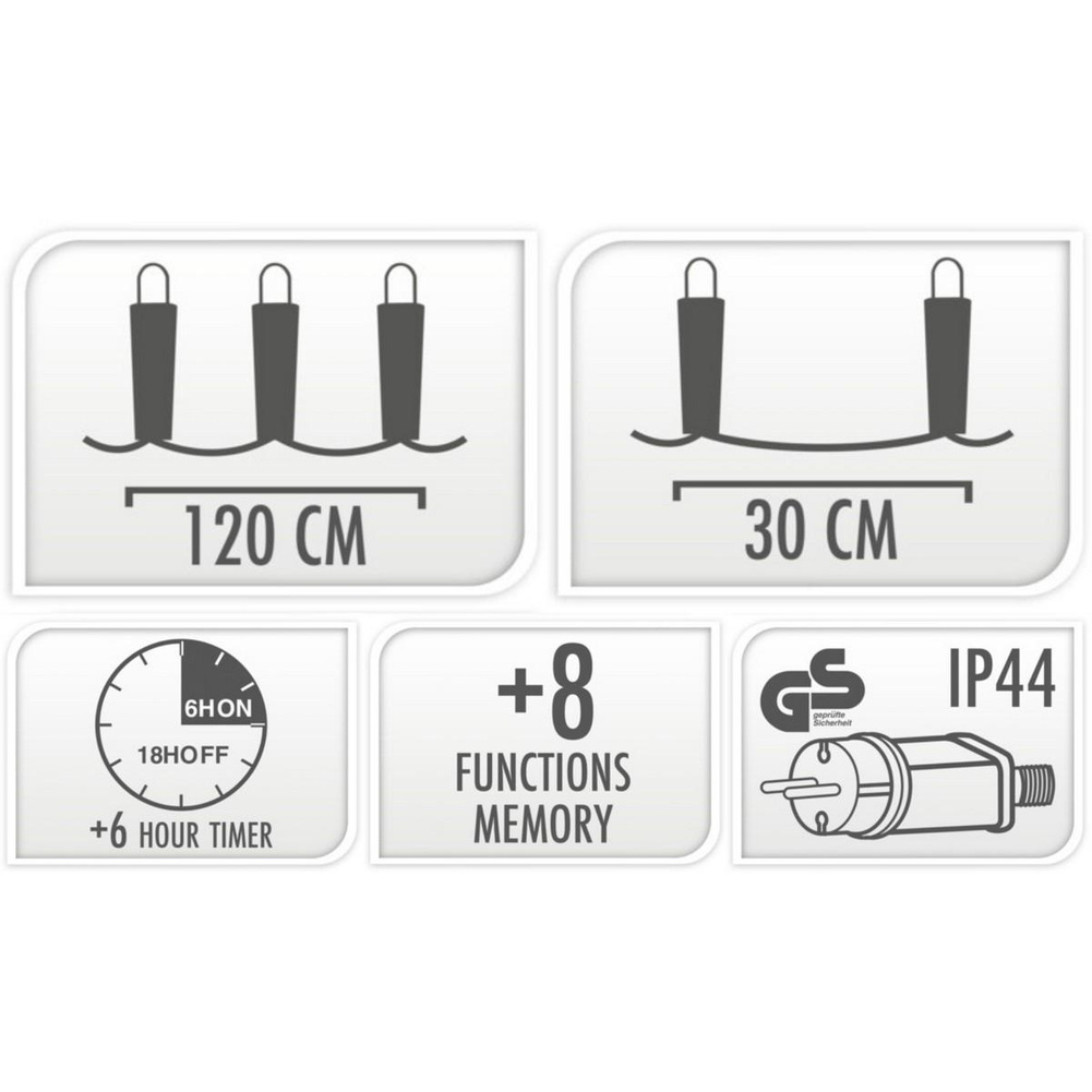 - Długość kabla z lampkami ok.: 120 x 120 cm