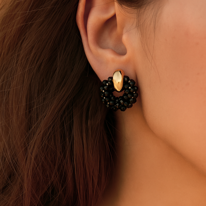 Kolczyki sztuczne sztyfty przy uchu z koralikami.