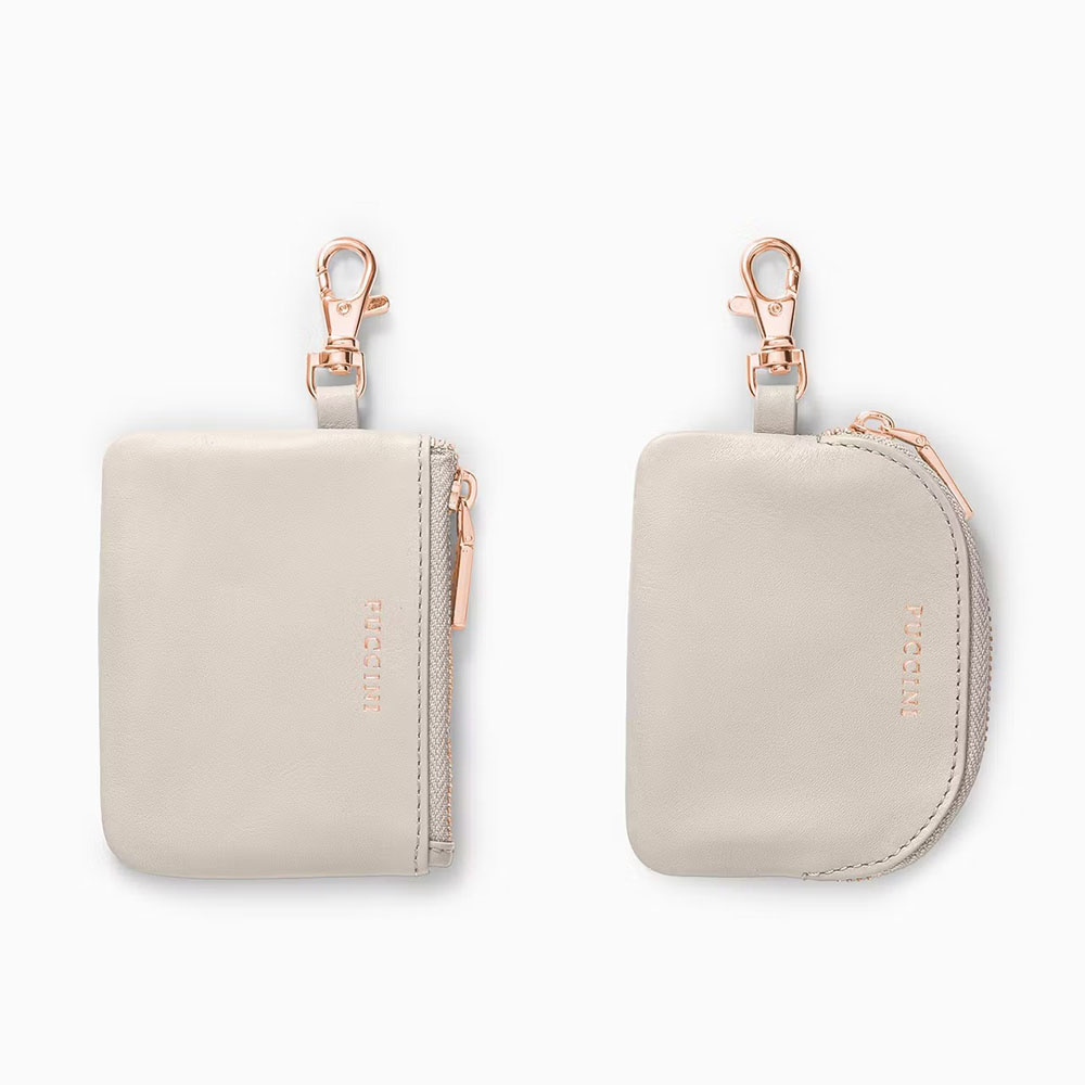 Brelok z dwoma saszetkami Zen Collection to stylowy i funkcjonalny dodatek, który doskonale sprawdzi się na co dzień. Wykonany z wysokiej jakości skóry naturalnej zachwyca elegancją, nowoczesnym charakterem i praktycznym zastosowaniem. To idealny sposób na przechowywanie najważniejszych drobiazgów w jednym miejscu – zawsze pod ręką i zawsze w porządku.