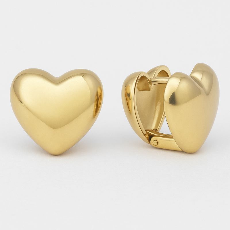 Kolczyki ze stali szlachetnej platerowane 14k złotem, dwustronne serca KST3412