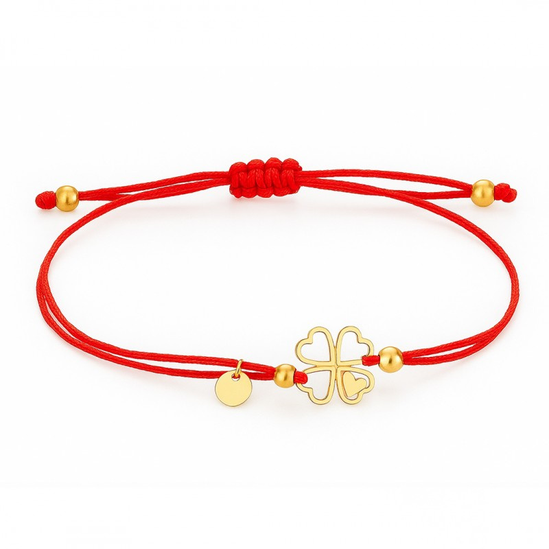 Bransoletka na rękę stal chirurgiczna pozłacana KONICZYNA, czerwona na sznurku BST1553
