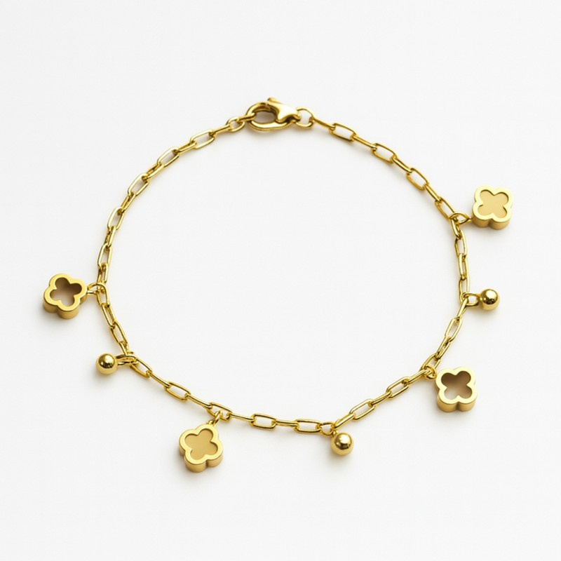 Bransoletka na rękę stal chirurgiczna pozłacana 14k złotem, koniczynka BST1591