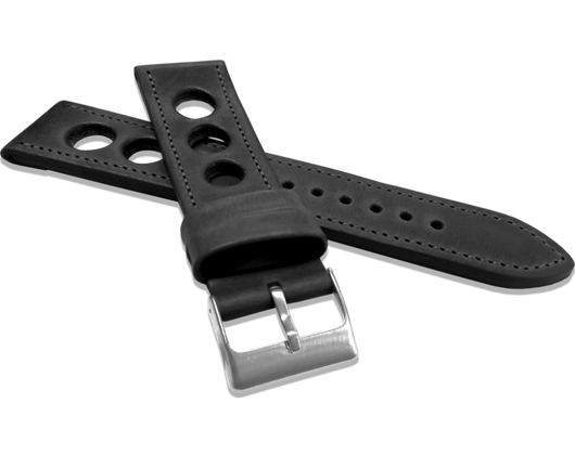 LAVVU Perforowany czarny szyty pasek VINTAGE z luksusowej skóry Top Grain - 22