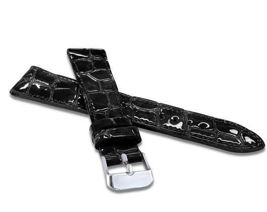 LAVVU Czarny szyty pasek lakierowany CROCO OCALA z luksusowej skóry Top Grain - 16