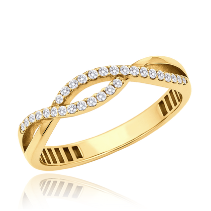 Elegancki pierścionek z białą cyrkonią wykonany z prawdziwego 14-karatowego złota łączy klasykę z nowoczesnym stylem.