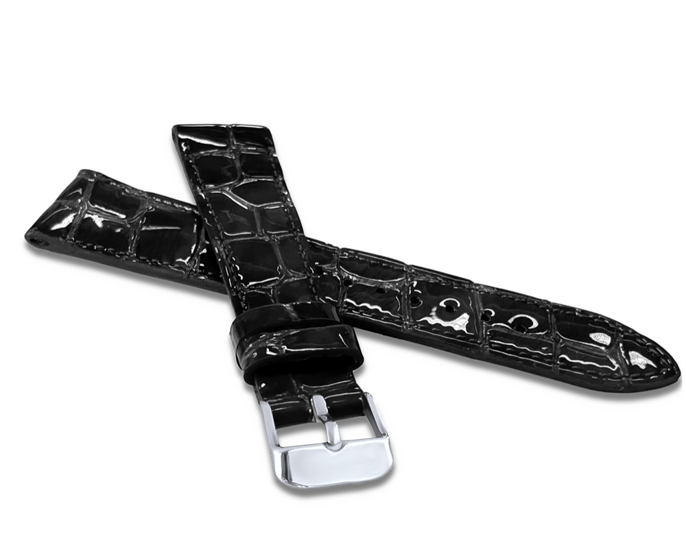 LAVVU Czarny szyty pasek lakierowany CROCO OCALA z luksusowej skóry Top Grain - 14
