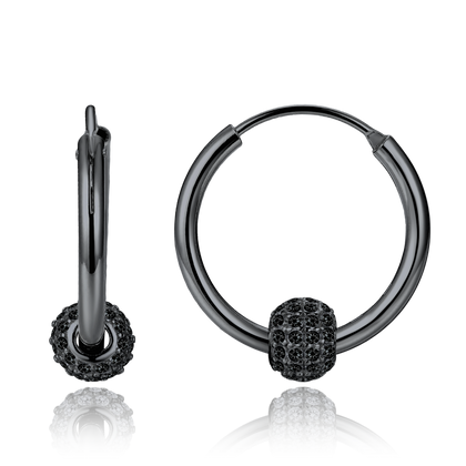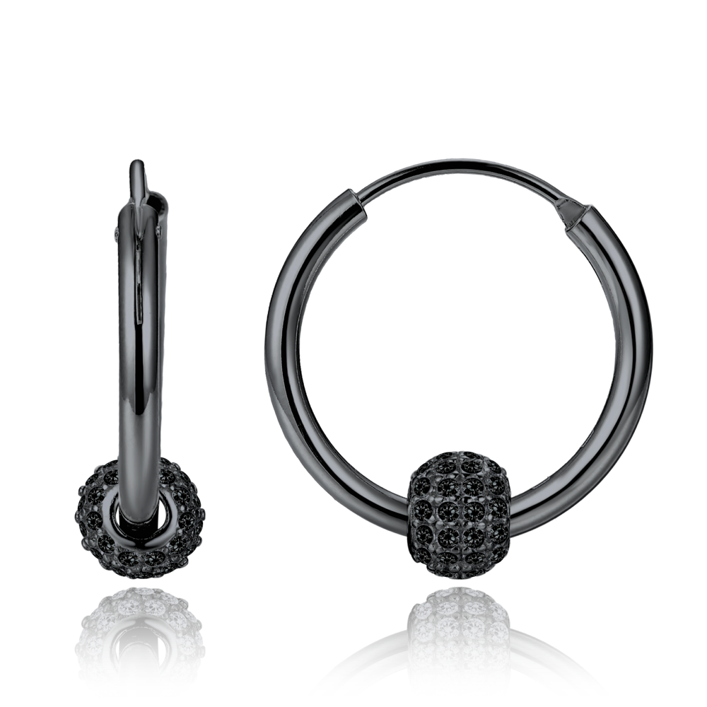 MINET Eleganckie srebrne kolczyki pokryte czarnym rodem z cyrkoniami