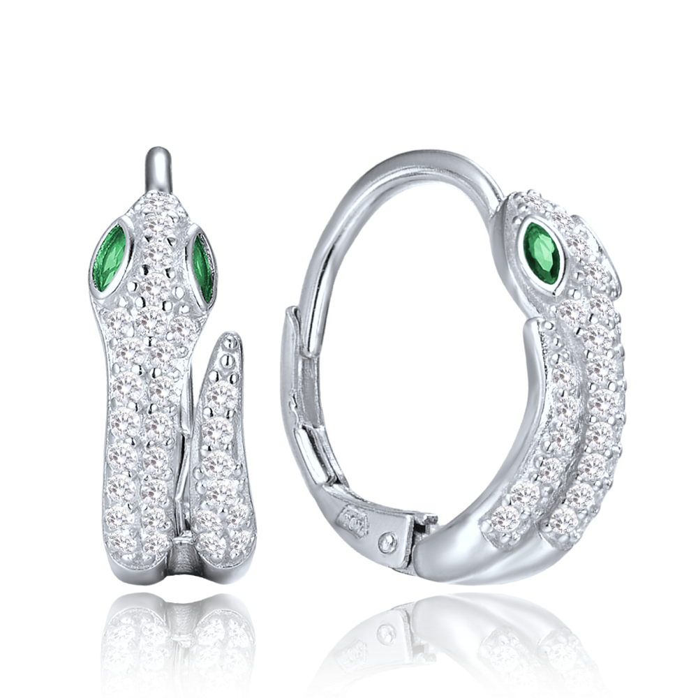 MINET Srebrne kolczyki wąż z cyrkoniami