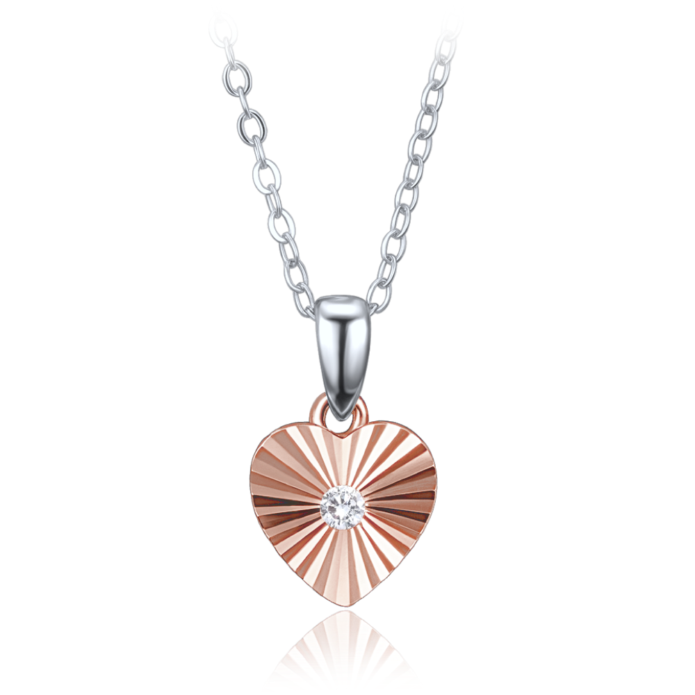 MINET Delikatny rosegold srebrny naszyjnik serce z cyrkonią
