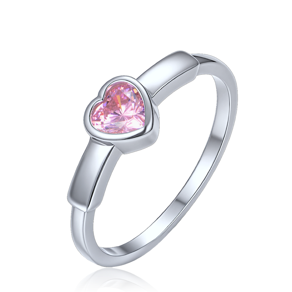 MINET Delikatny srebrny pierścionek serce z różową cyrkonią rozmiar 14