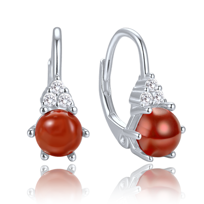 MINET Eleganckie srebrne kolczyki z jaspisem i cyrkoniami