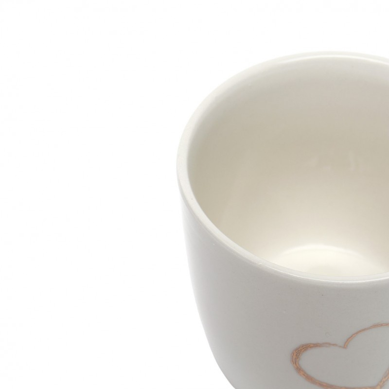 Specyfikacja: Materiał: ceramika Kolor: biały Pojemność: max 300 ml Wymiary: 9cm x 8,5cm Długość łyżeczki: 12,5cm Czyszczenie: Produkt przeznaczony do ręcznego