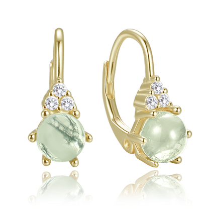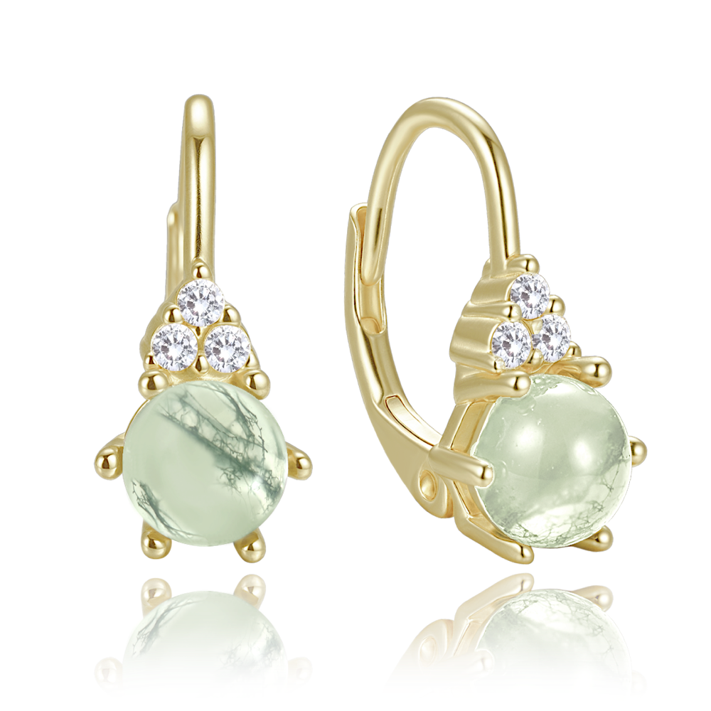 MINET Eleganckie pozłacane srebrne kolczyki z jasnym agatem mszystym i cyrkoniami