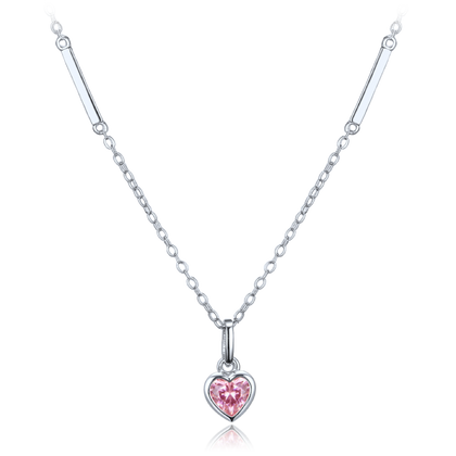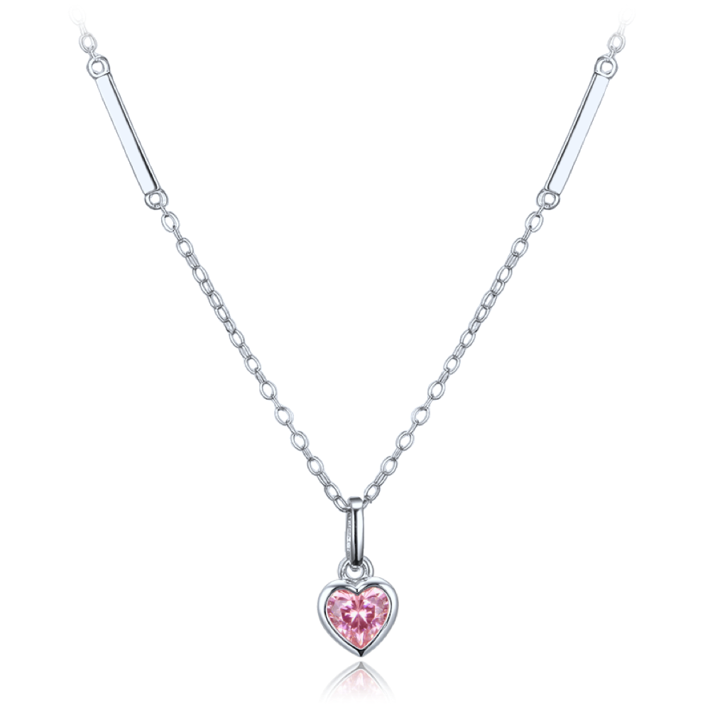 MINET Delikatny srebrny naszyjnik serce z różową cyrkonią
