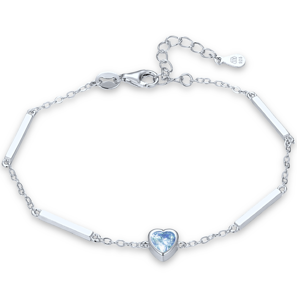 MINET Delikatna srebrna bransoletka serce z niebieską cyrkonią