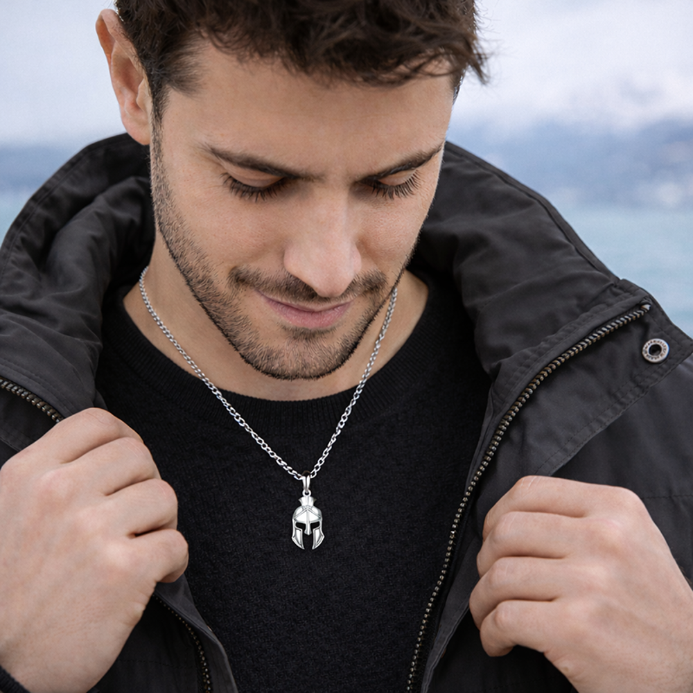 LAVVU Męski srebrny naszyjnik hełm Spartan
