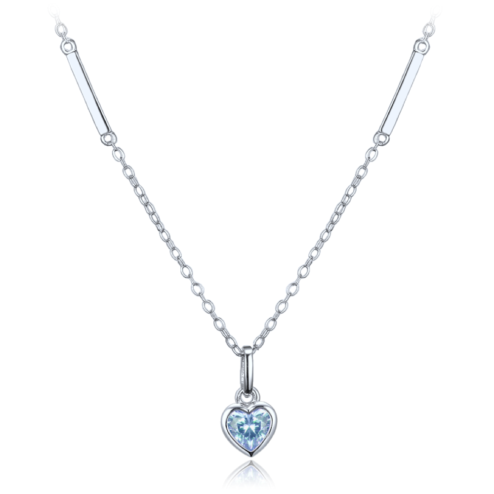 MINET Delikatny srebrny naszyjnik serce z niebieską cyrkonią