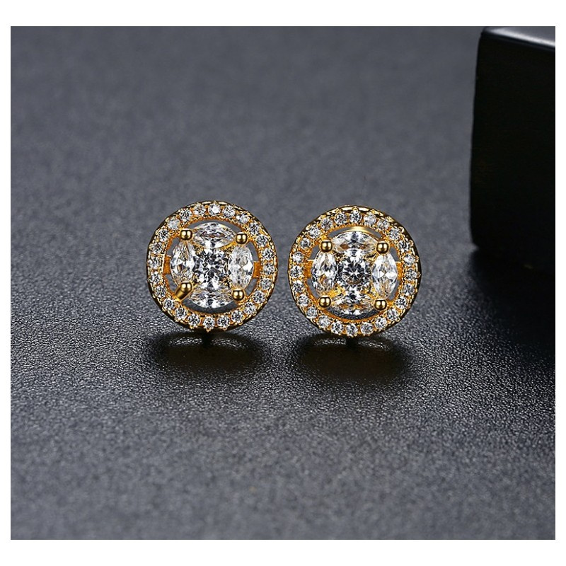 Wymiary kolczyków: 1 cm x 1 cm x 0,4cm Wymiary kartonika: 6 cm x 5,5 cm Waga: 3 g netto / 4 g brutto Kolor: jasne złoto Rodzaj zapięcia: sztyft