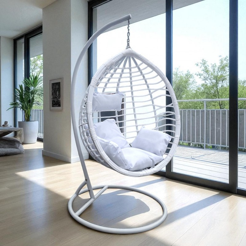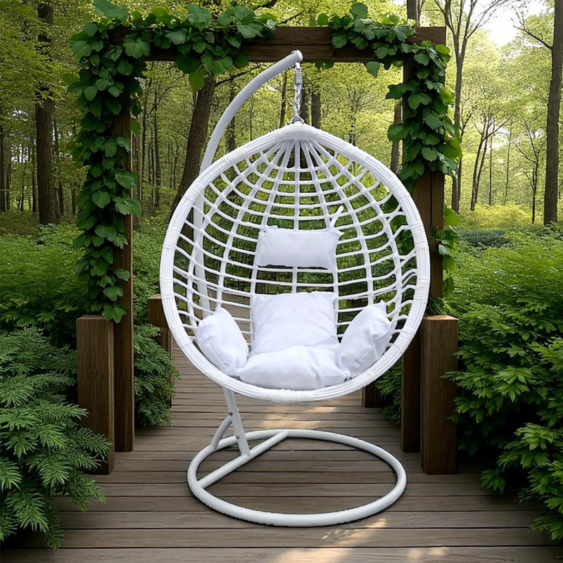 Fotel wiszący huśtawka kokon z poduszkami biały - KR36