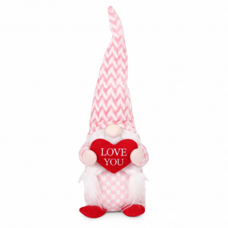 Krasnal Skrzat Walentynkowy, Figurka Siedząca Różowy, z Sercem LOVE ME KSN60