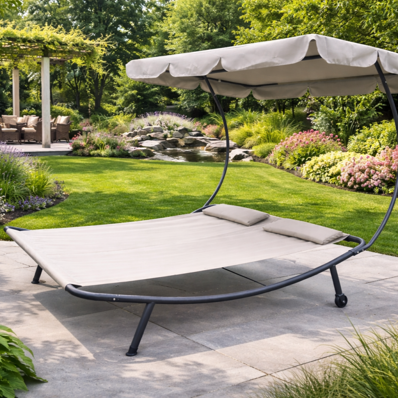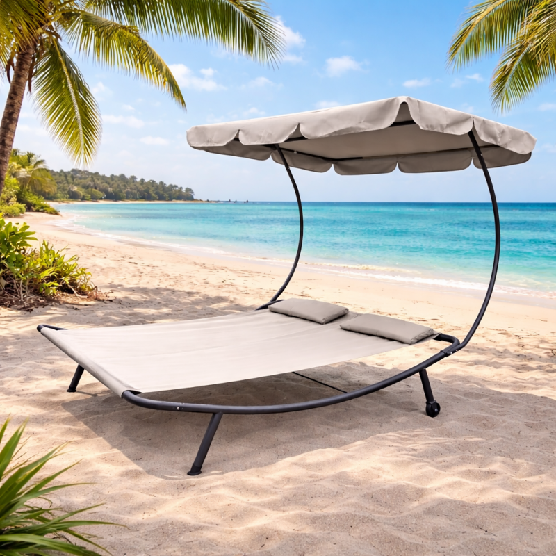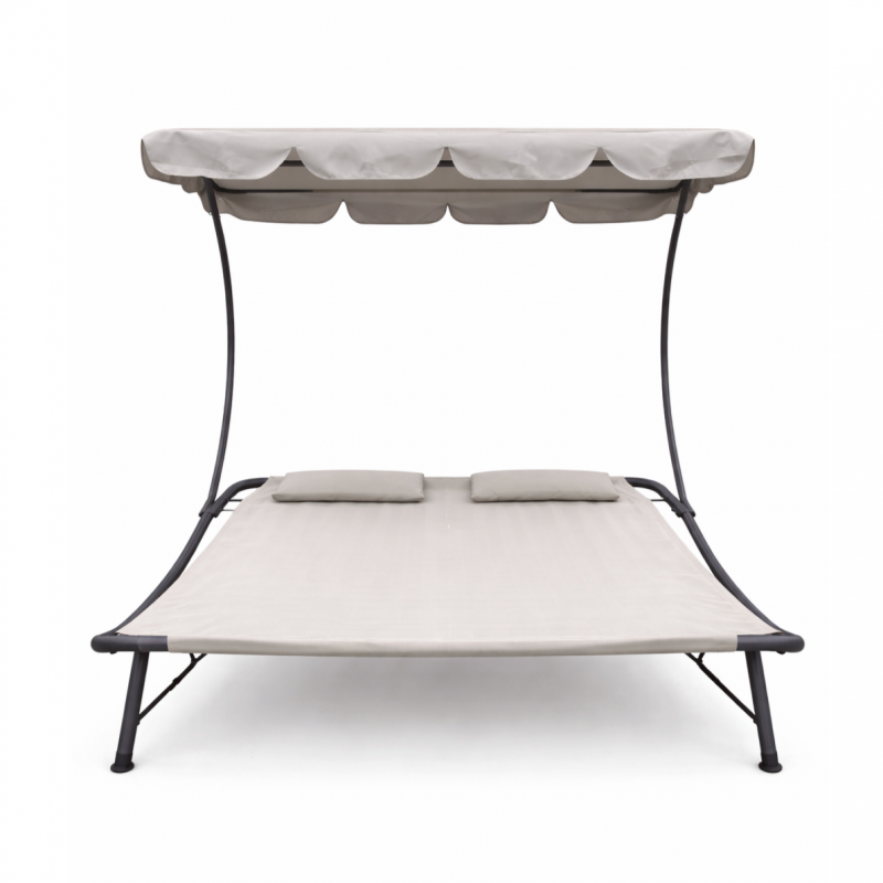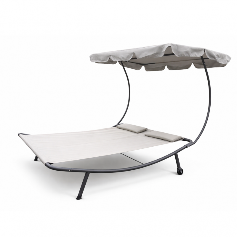 Leżak ogrodowy, leżanka dwuosobowa z baldachimem szary 200x173x155cm LE02