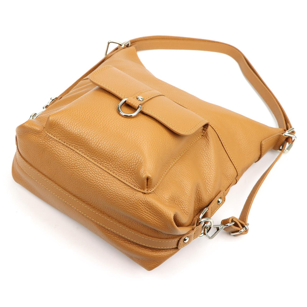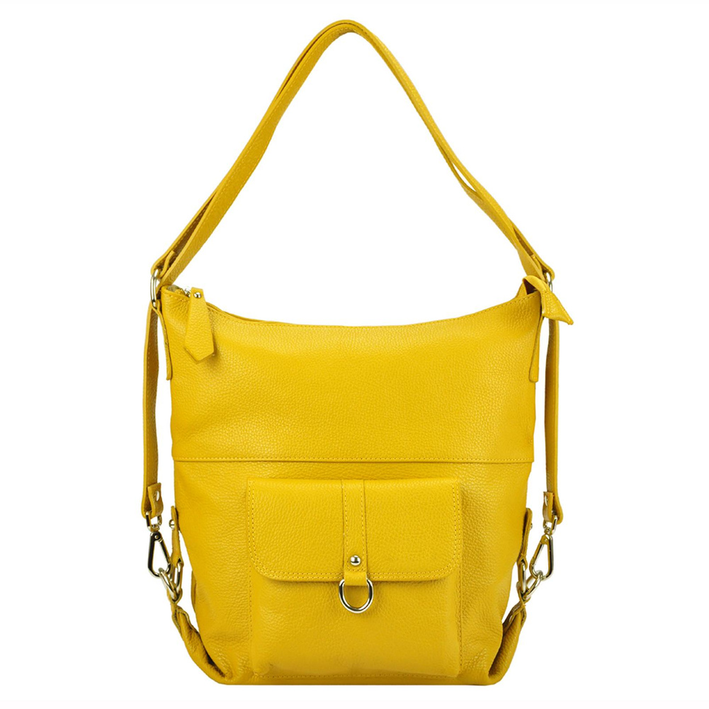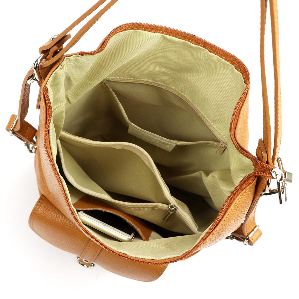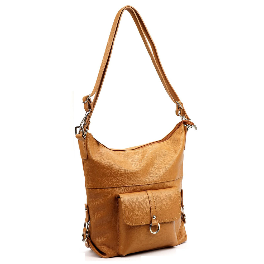 Pojemna, mieszcząca A4. torba z funkcją plecaka. Wykonana jest z najwyższej jakości, włoskiej, naturalnej skóry o wyrazistym "groszkowaniu". Konstrukcja torebki jest jednokomorowa. Wnętrze wykończono trwałą podszewką, w którą wszyto kieszeń-przegrodę, zapinaną na suwak. kieszonkę na telefon i kieszonkę na drobiazgi. Całość zamykana jest solidnym, metalowym zamkiem błyskawicznym. Paski tworzące uchwyt można przepiąć wydłużając je dwukrotnie lub też w ten sposób, by można było nosić torebkę jak plecak.