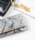 ( ilość produktów: 3 )Lakierowany portfel damski wysokiej jakości zdobiony wężowym wzorem
